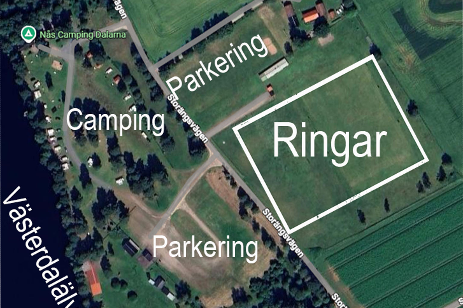 Bredvid de plana ytorna ligger Storängets folkpark med älven rinnande bredvid. Där finns även den vackra spelplatsen för Ingmarspelen, servering under tak och bredvid detta finns en liten camping med ett fåtal platser. Vi utreder hur vi kan utöka dessa närmare.