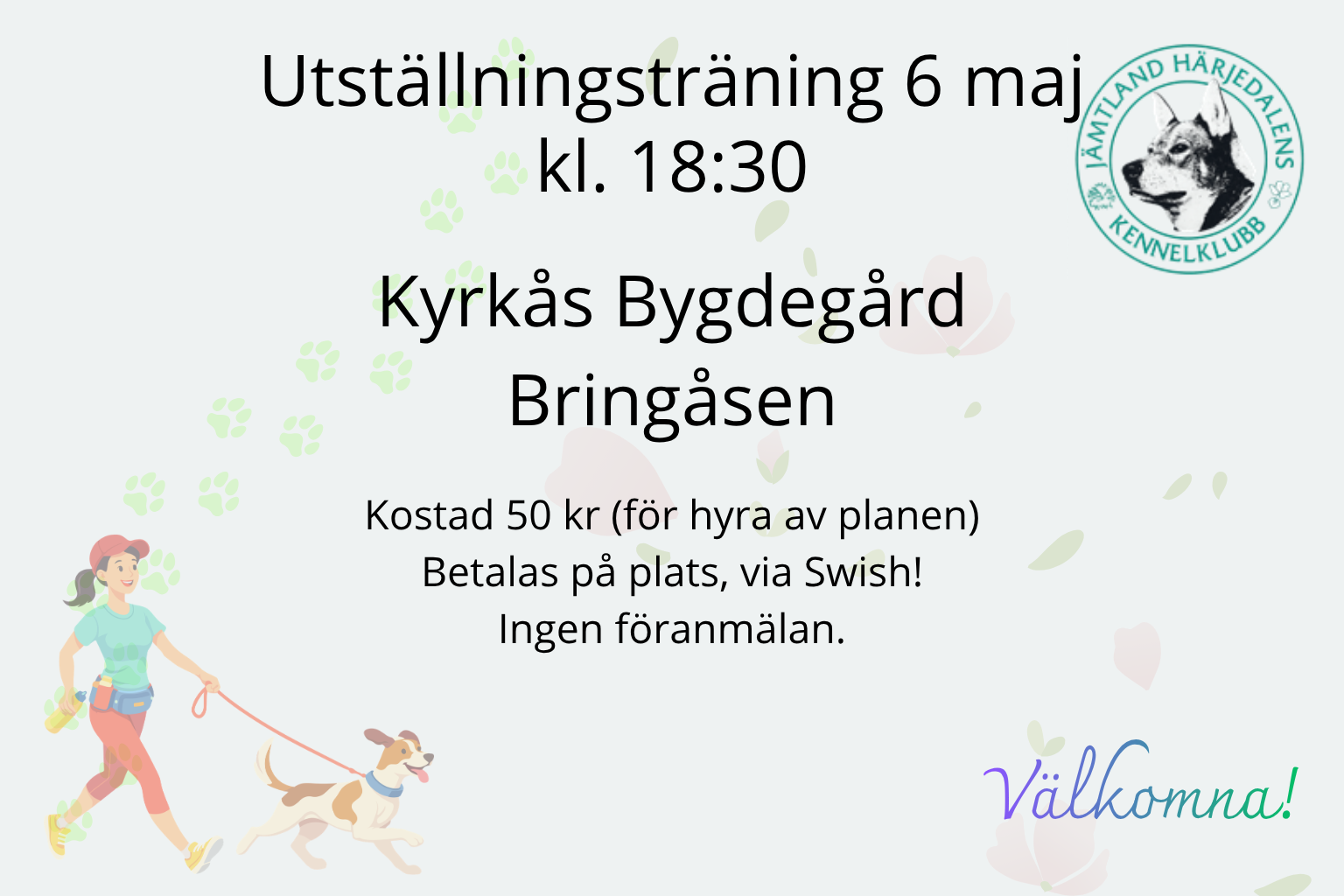 TräningVälkomna på utställningsträning i Bringåsen 6 maj.