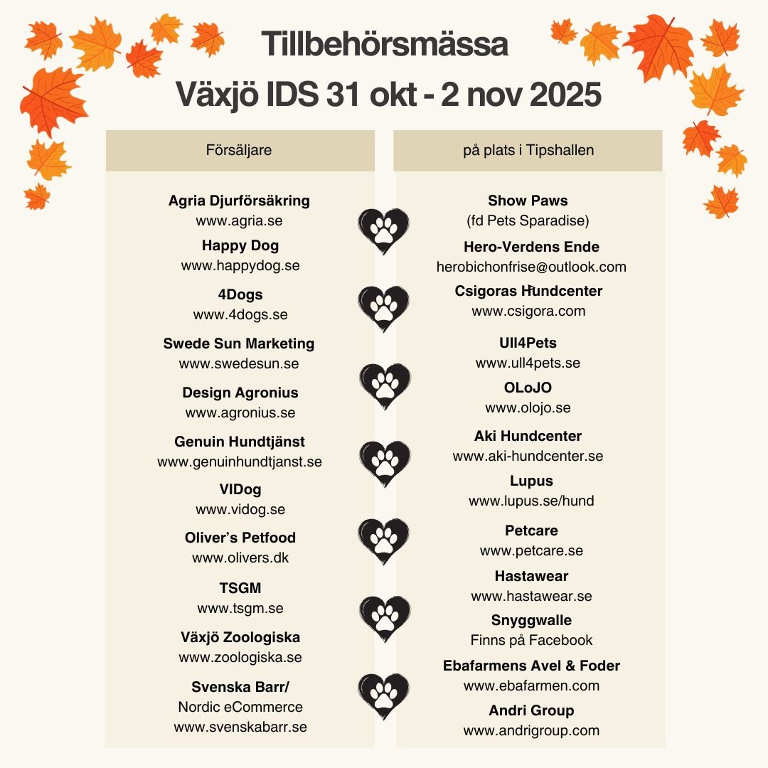 Missa inte vår tillbehörsmässa med 23 företag på plats där du kan shoppa allt du kan behöva till din hund!