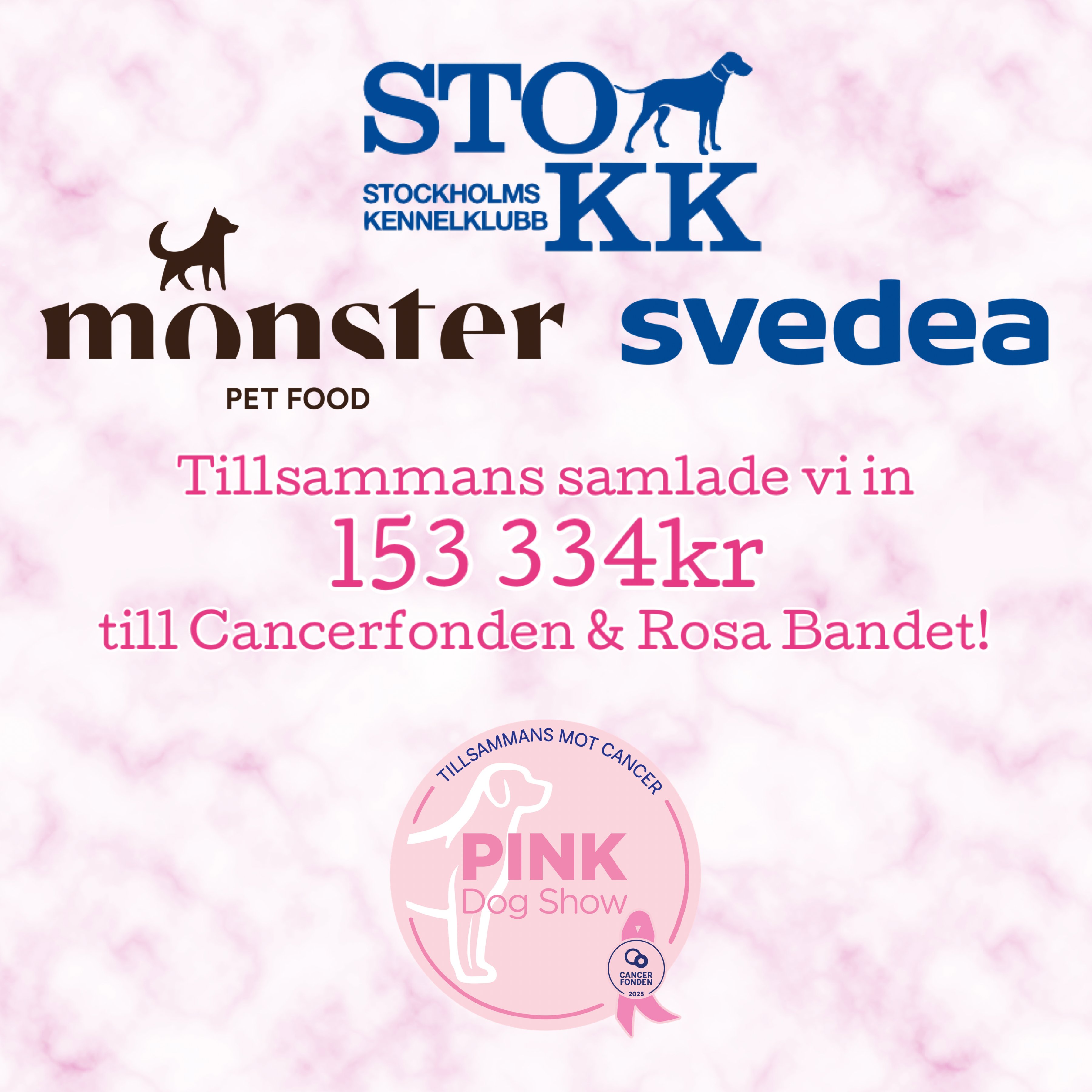 Tack vare alla underbara utställare som kom med sina fyrbenta stjärnor och våra otroliga funktionärer som jobbade ideellt, lyckades vi få ihop ett överskott på 153 334kr! Den summan kommer att skänkas till Cancerfonden och Rosa Bandet!